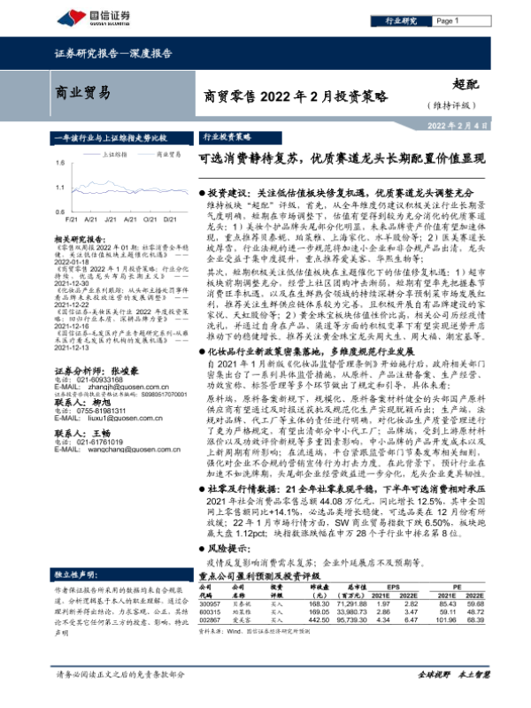 【国信证券】【20220204】商贸零售2022年2月投资策略:可选消费静待复苏,优质赛道龙头长期配置价值显现-13页