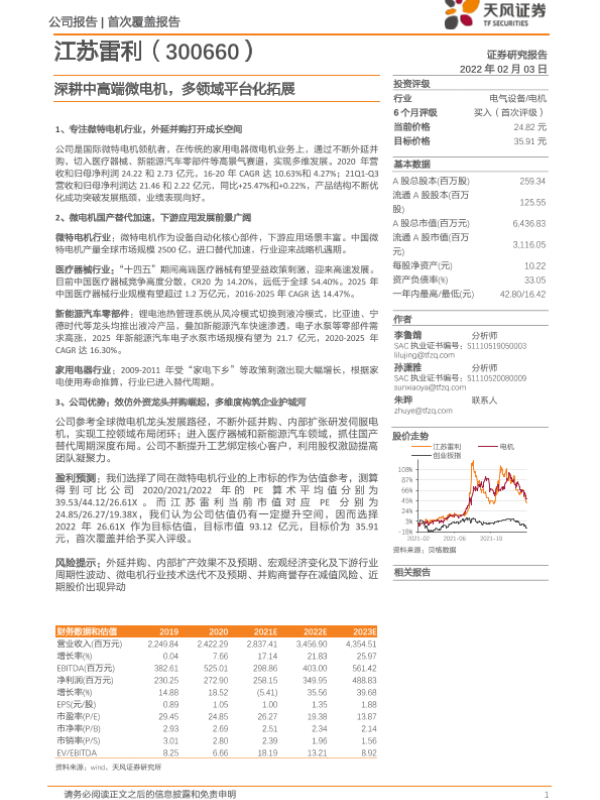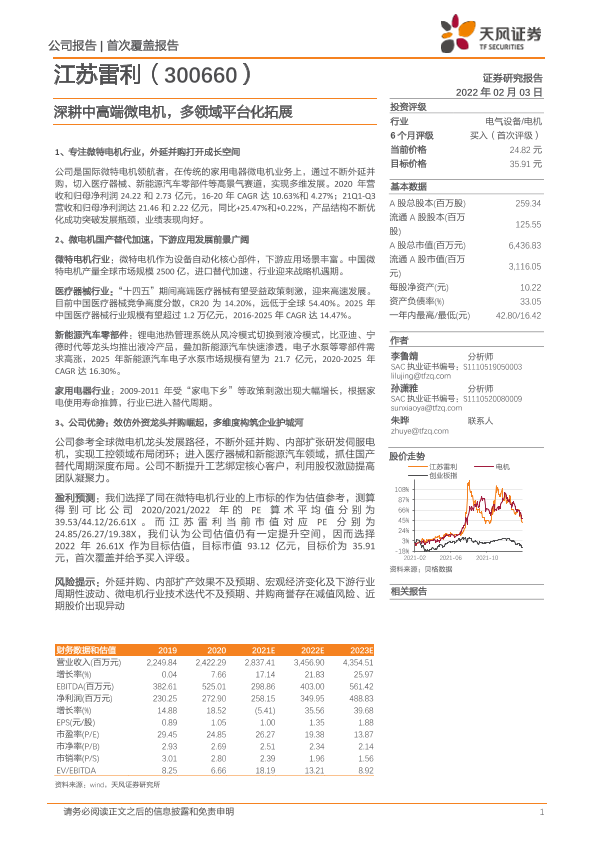【天风证券】【20220203】深度报告-20220203-天风证券-江苏雷利-300660.SZ-深耕中高端微电机_多领域平台化拓展-29页