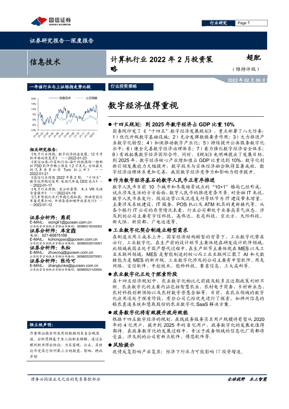 【国信证券】【20220206】计算机行业2022年2月投资策略:数字经济值得重视-15页