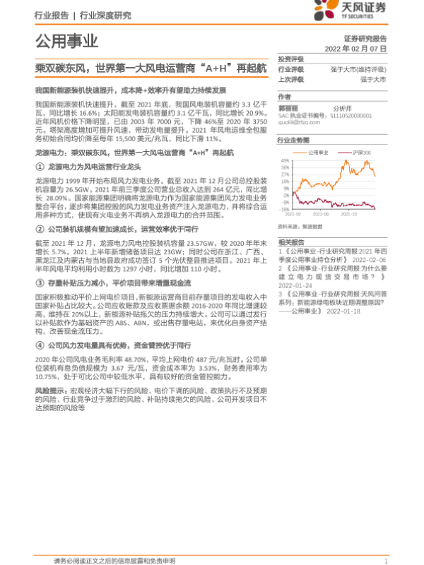 【天风证券】【20220207】公用事业行业深度研究_乘双碳东风_世界第一大风电运营商_A+H_再起航-23页
