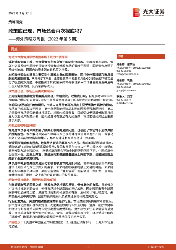 【光大证券】【20220322】海外策略双周报(2022年第5期):政策底已现,市场还会再次探底吗?-19页