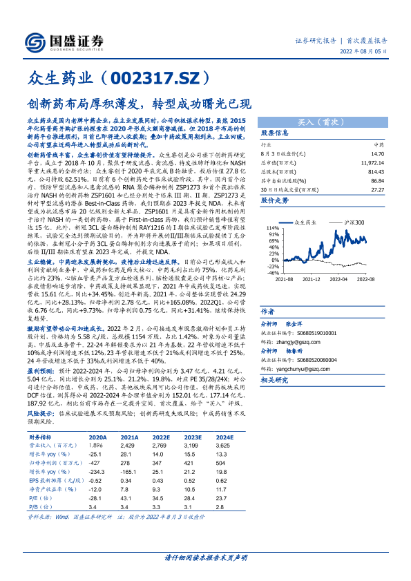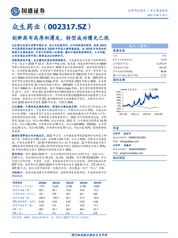 【国盛证券】【20220805】深度报告-20220805-国盛证券-众生药业-002317.SZ-创新药布局厚积薄发_转型成功曙光已现-29页