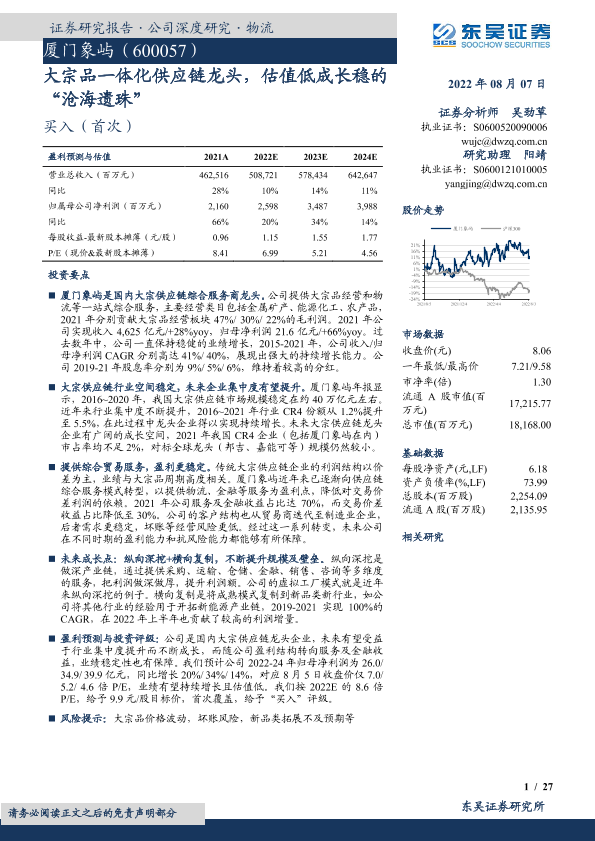 【东吴证券】【20220807】大宗品一体化供应链龙头,估值低成长稳的 “沧海遗珠”-27页
