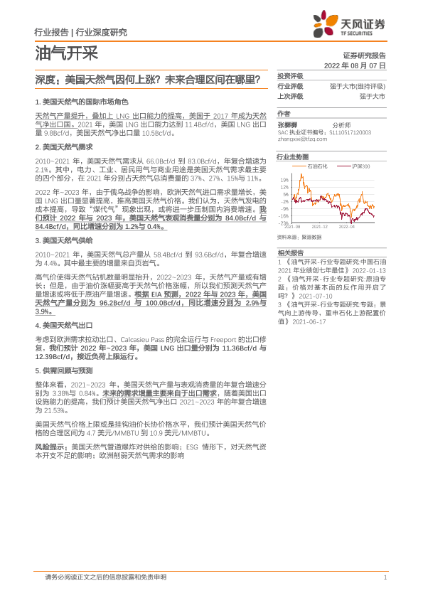 【天风证券】【20220807】深度报告-美国天然气因何上涨_未来合理区间在哪里-15页