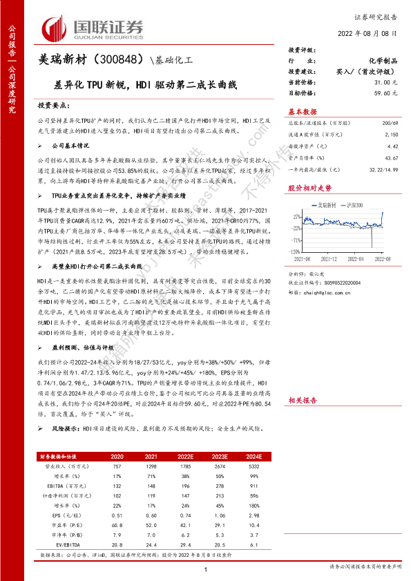 【国联证券】【20220808】深度报告-20220808-国联证券-美瑞新材-300848.SZ-差异化TPU新锐_HDI驱动第二成长曲线-20页