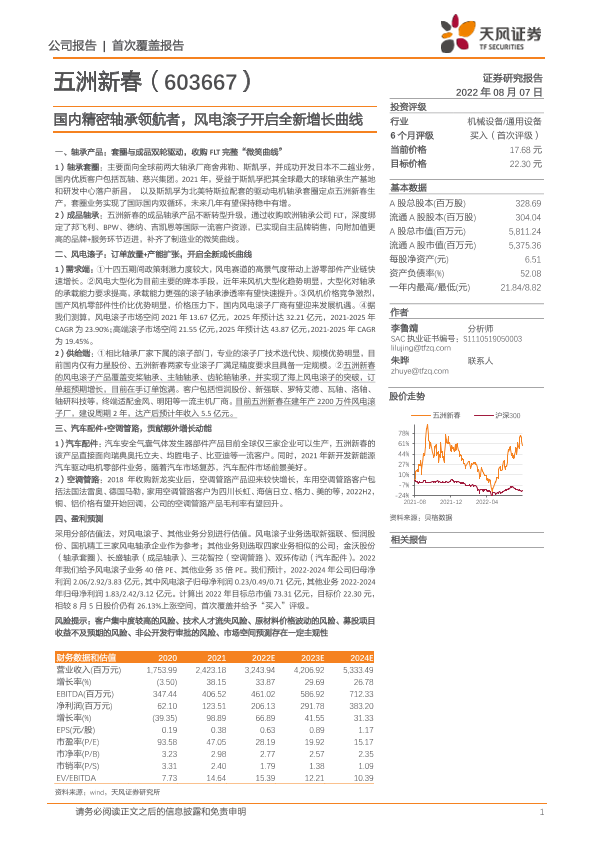 【天风证券】【20220807】深度报告-20220807-天风证券-五洲新春-603667.SH-国内精密轴承领航者_风电滚子开启全新增长曲线-33页