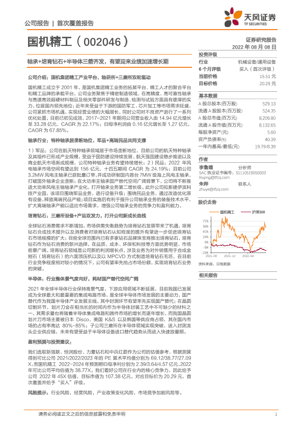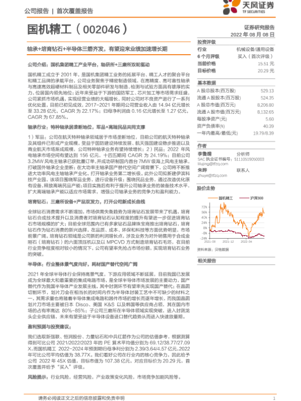 【天风证券】【20220808】深度报告-20220808-天风证券-国机精工-002046.SZ-轴承+培育钻石+半导体三箭齐发_有望迎来业绩加速增长期-44页
