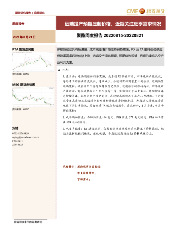 【招商期货】【20220821】20220821-招商期货-聚酯周度报告_远端投产预期压制价格_近期关注旺季需求情况-27页