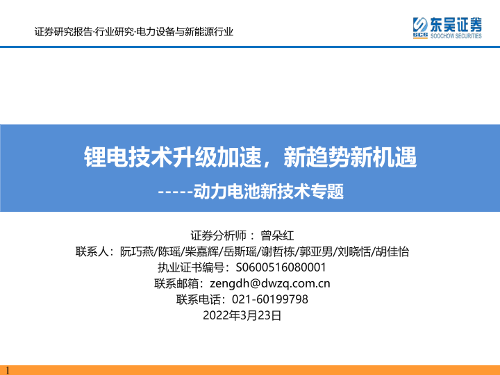 【东吴证券】【20220323】电力设备与新能源行业动力电池新技术专题:锂电技术升级加速,新趋势新机遇-104页