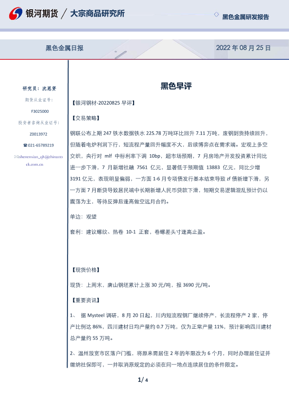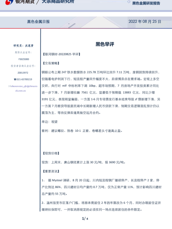 【银河期货】【20220825】20220825-银河期货-黑色早评-4页