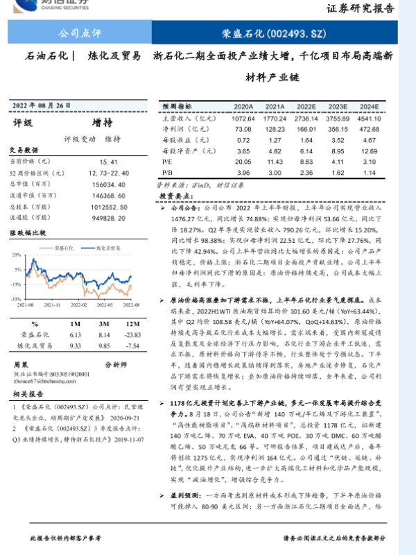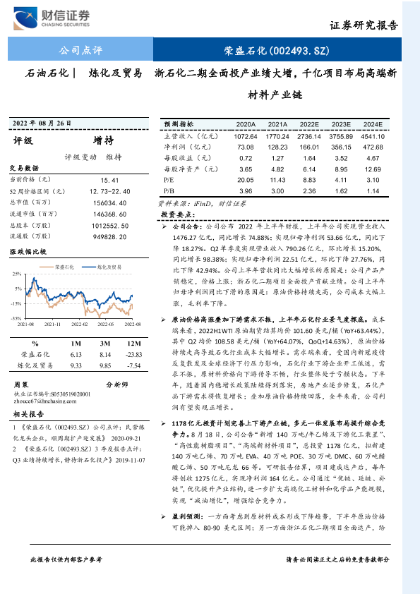 【财信证券】【20220826】浙石化二期全面投产业绩大增,千亿项目布局高端新材料产业链-3页