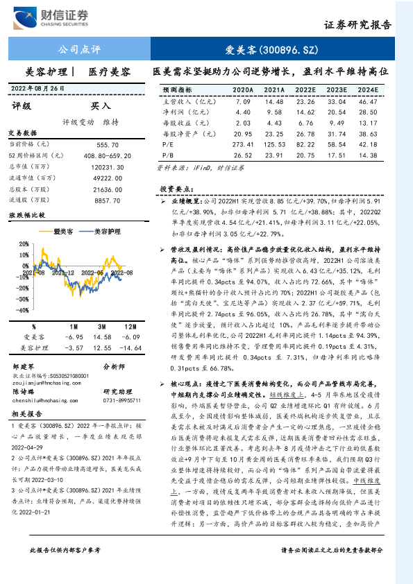 【财信证券】【20220826】医美需求坚挺助力公司逆势增长_盈利水平维持高位-3页