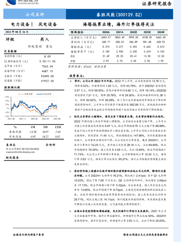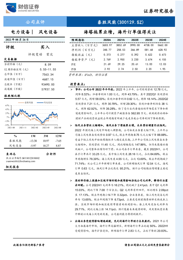 【财信证券】【20220826】泰胜风能-海塔拖累业绩_海外订单值得关注-4页