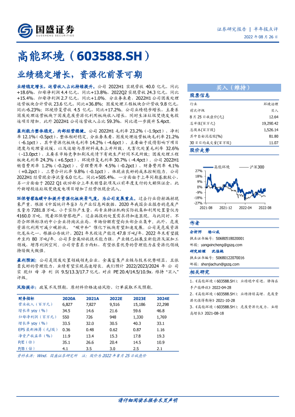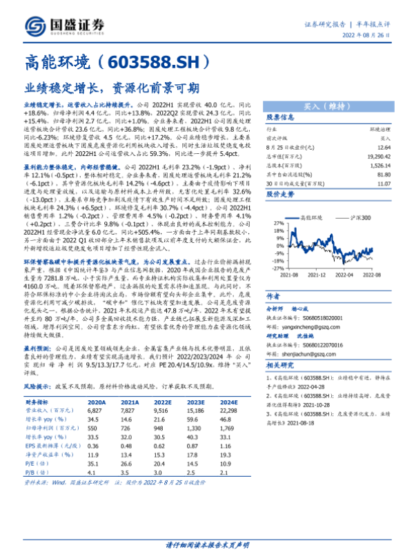 【国盛证券】【20220826】高能环境(603588.SH):业绩稳定增长,资源化前景可期-3页