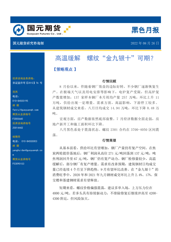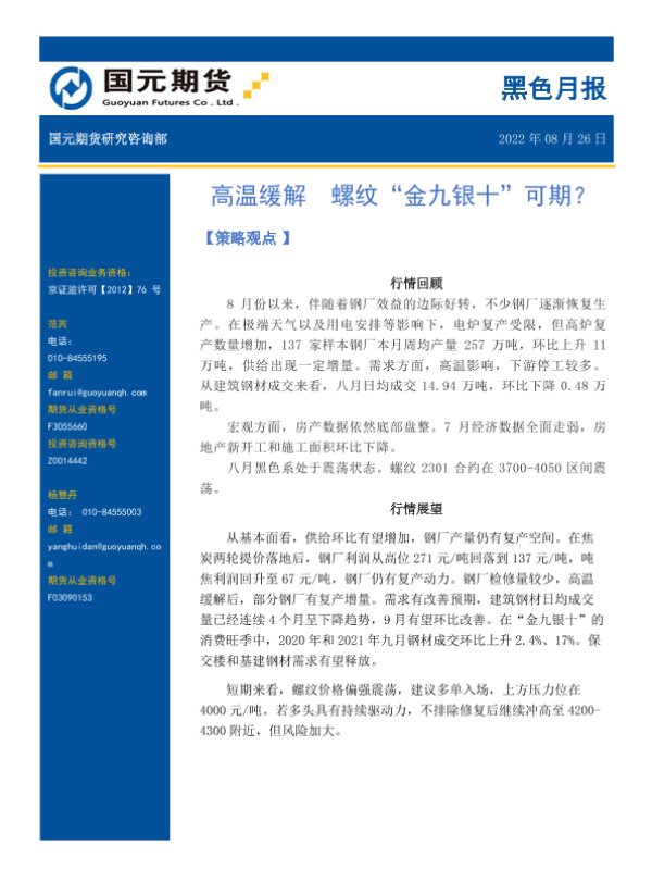 【国元期货】【20220826】黑色月报_高温缓解_螺纹_金九银十_可期-8页