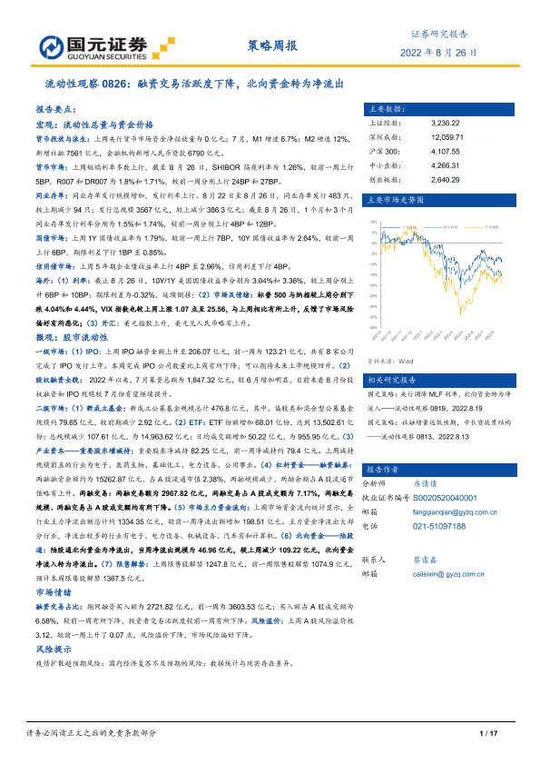 【国元证券】【20220826】流动性观察0826:融资交易活跃度下降,北向资金转为净流出-17页