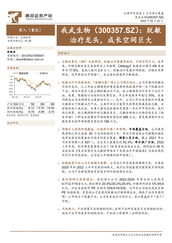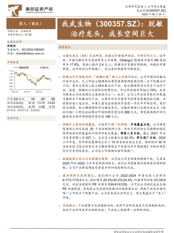 【德邦证券】【20220924】深度报告-20220924-德邦证券-我武生物-300357.SZ-脱敏治疗龙头_成长空间巨大-27页