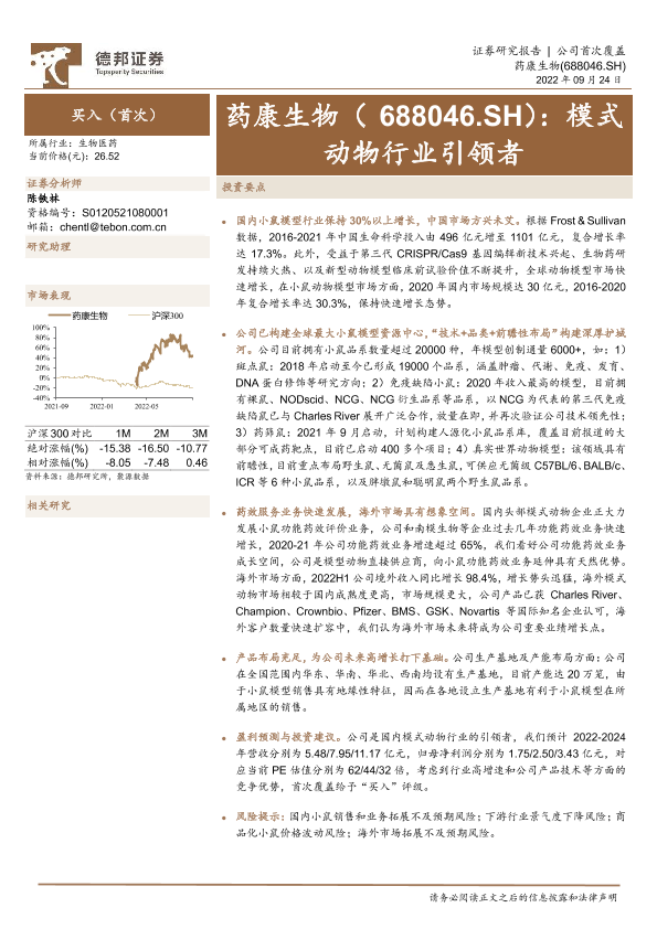 【德邦证券】【20220924】深度报告-20220924-德邦证券-药康生物-688046.SH-模式动物行业引领者-31页