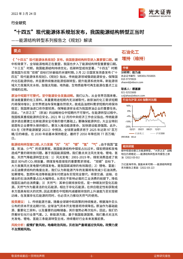【光大证券】【20220324】石油化工行业能源结构转型系列报告之《规划》解读:“十四五”现代能源体系规划发布,我国能源结构转型正当时-15页