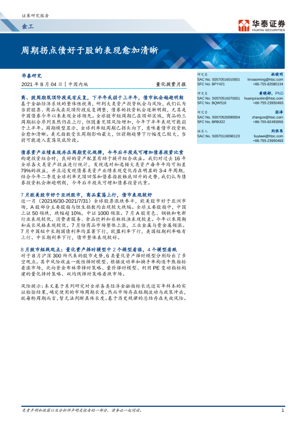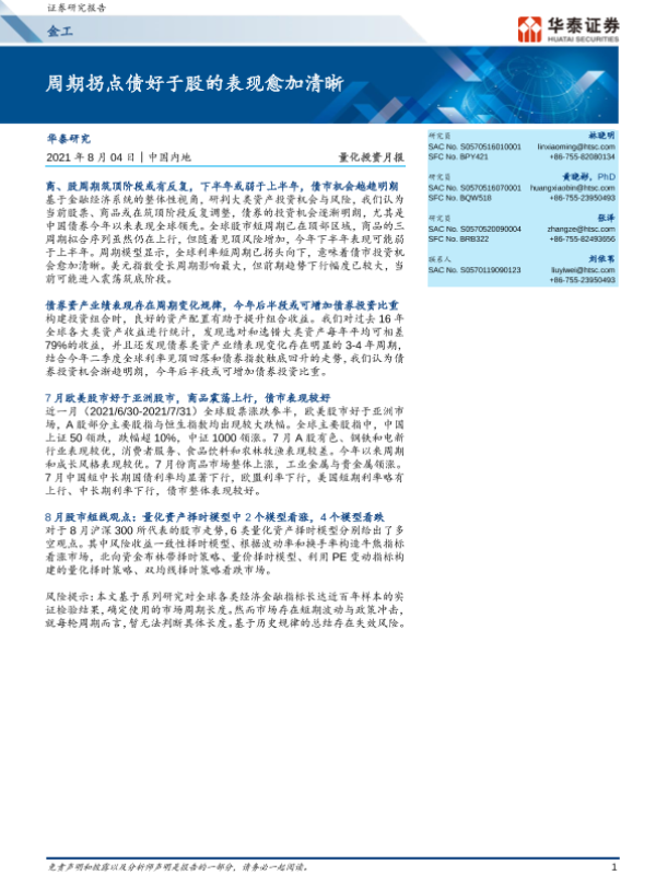 【华泰证券】【20210804】量化投资月报:周期拐点债好于股的表现愈加清晰-23页