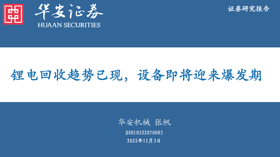 【华安证券】【20221103】电力设备:锂电回收趋势已现,设备即将迎来爆发期-26页