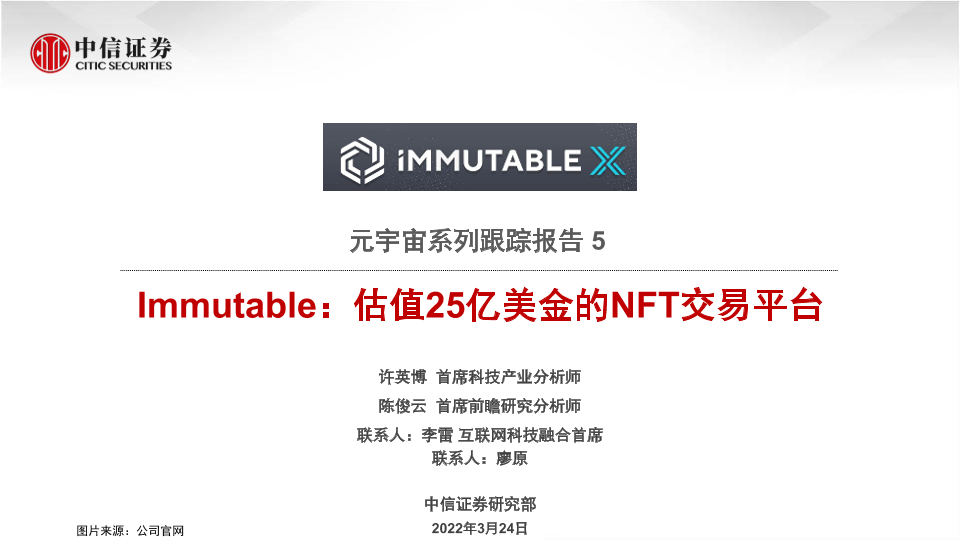 【中信证券】【20220324】科技行业元宇宙系列跟踪报告5:Immutable,估值25亿美金的NFT交易平台-21页
