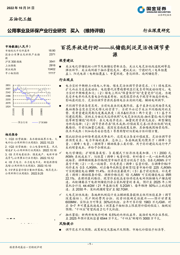 【国金证券】【20221031】公用事业及环保产业行业研究:百花齐放进行时-从储能到泛灵活性调节资源-31页