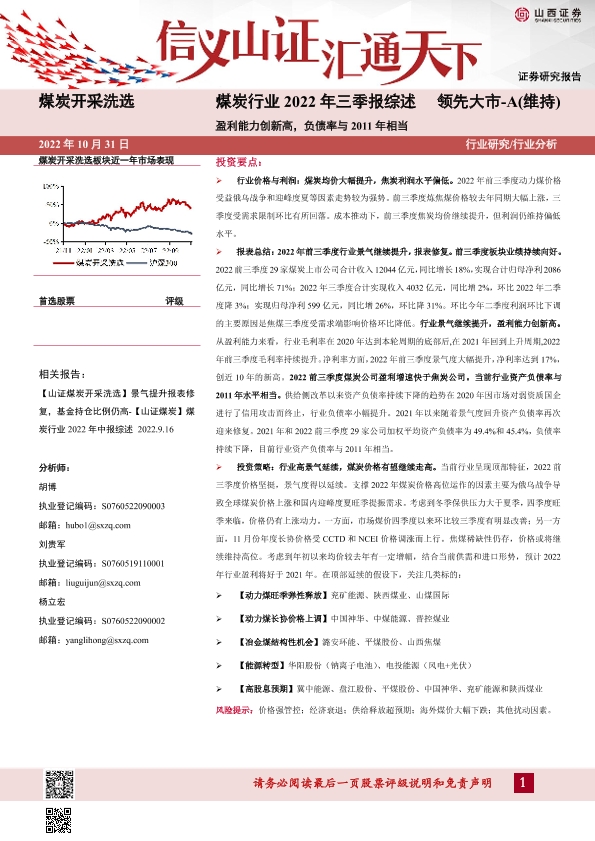 【山西证券】【20221031】煤炭行业2022年三季报综述-14页