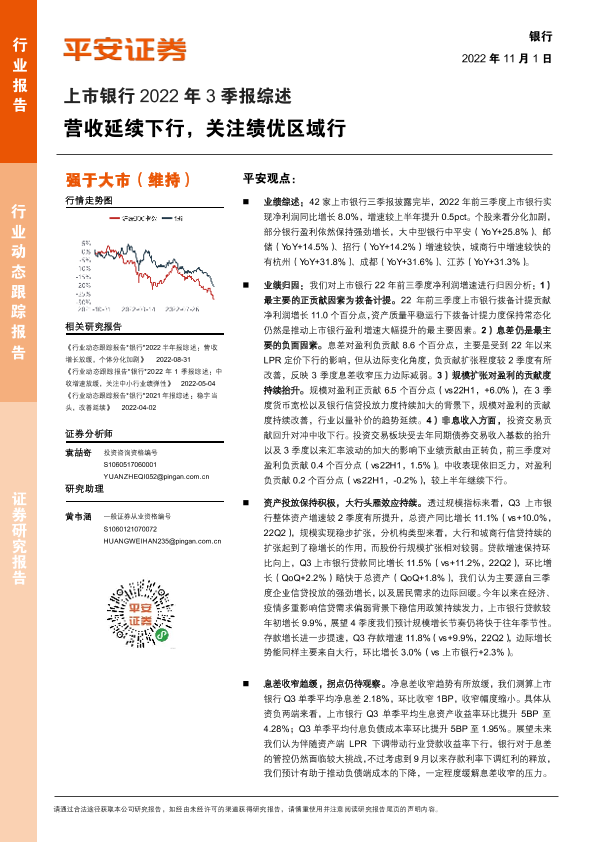 【平安证券】【20221101】上市银行2022年3季报综述:营收延续下行,关注绩优区域行-17页