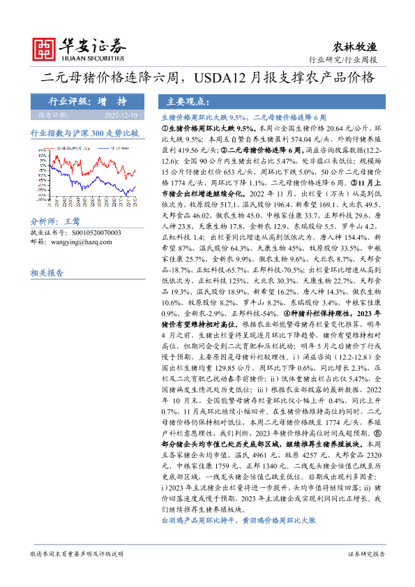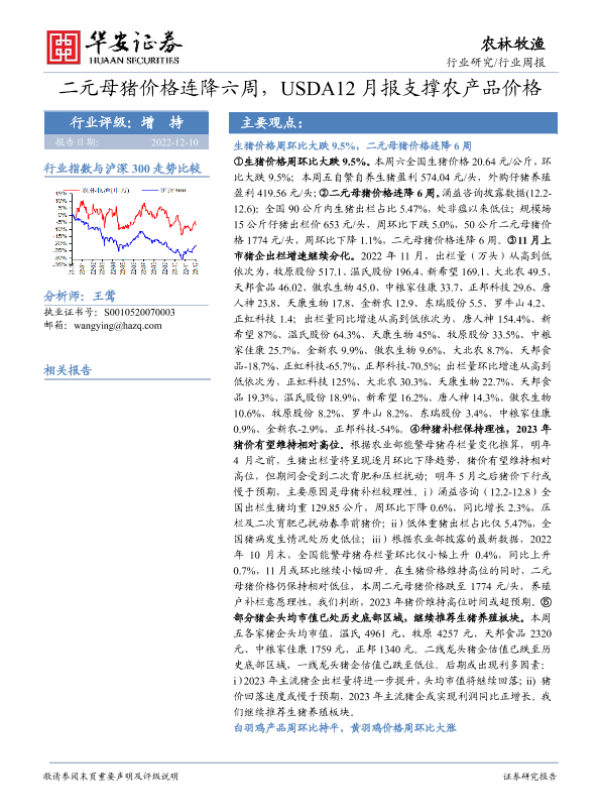 【华安证券】【20221210】20221210-华安证券-农林牧渔行业周报_二元母猪价格连降六周_USDA12月报支撑农产品价格-40页