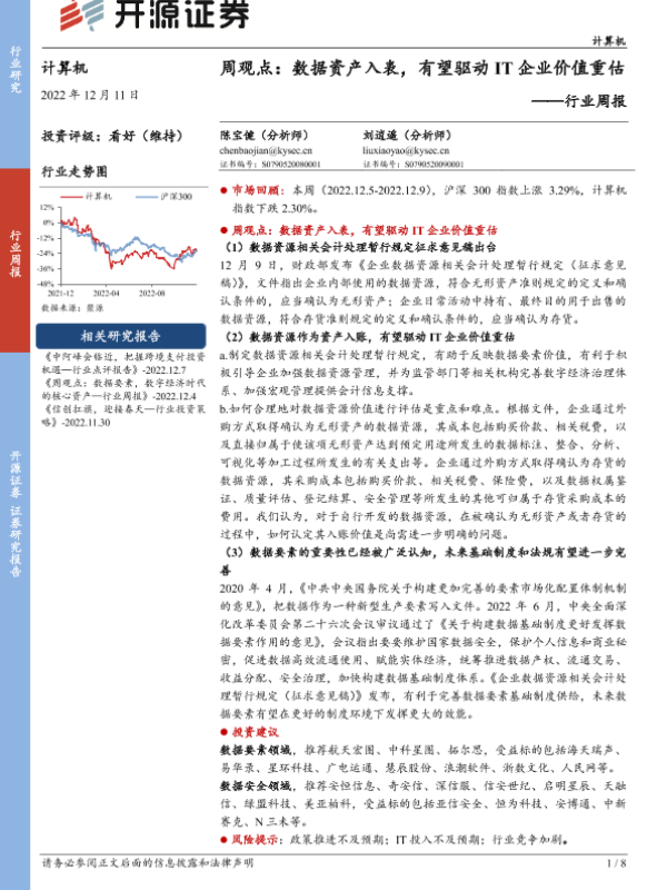 【开源证券】【20221211】周观点:数据资产入表,有望驱动IT企业价值重估-8页