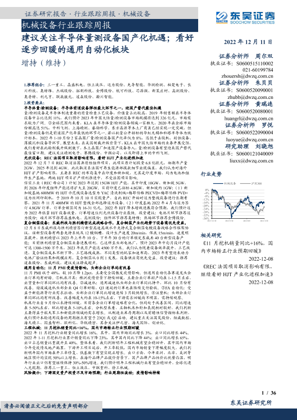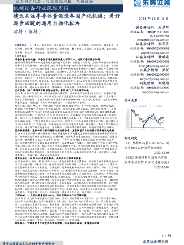 【东吴证券】【20221211】机械设备行业跟踪周报_建议关注半导体量测设备国产化机遇;看好逐步回暖的通用自动化板块-36页