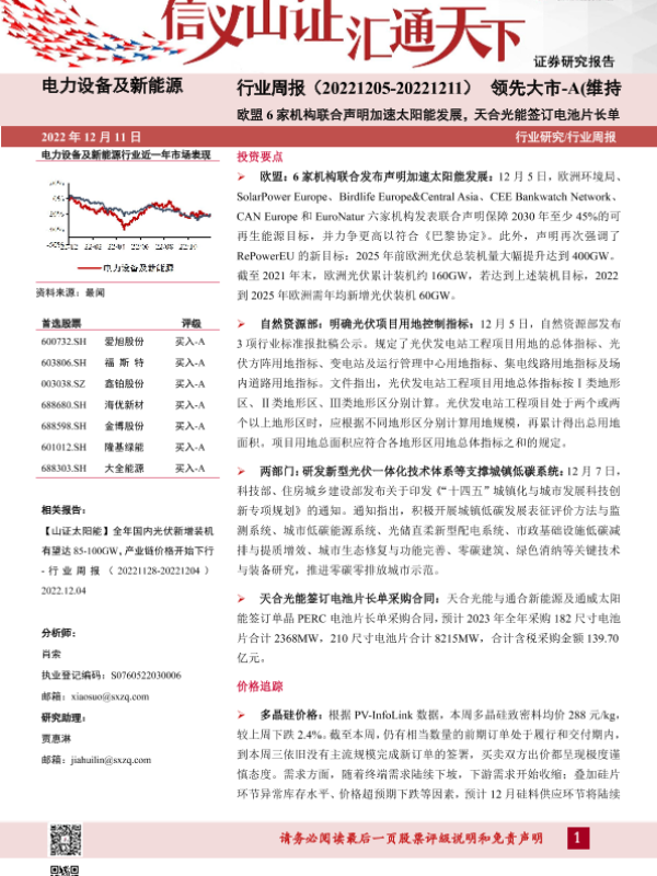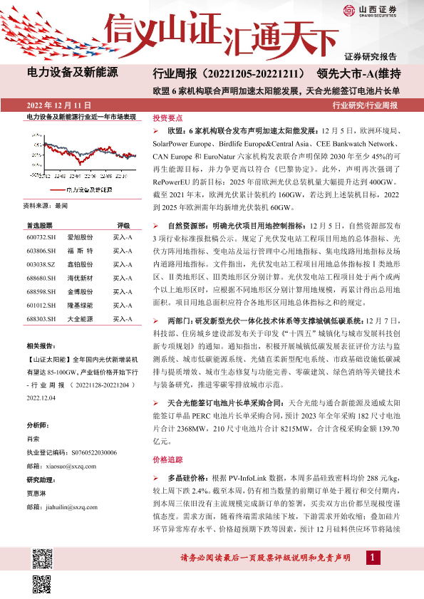 【山西证券】【20221211】电力设备及新能源行业周报-4页
