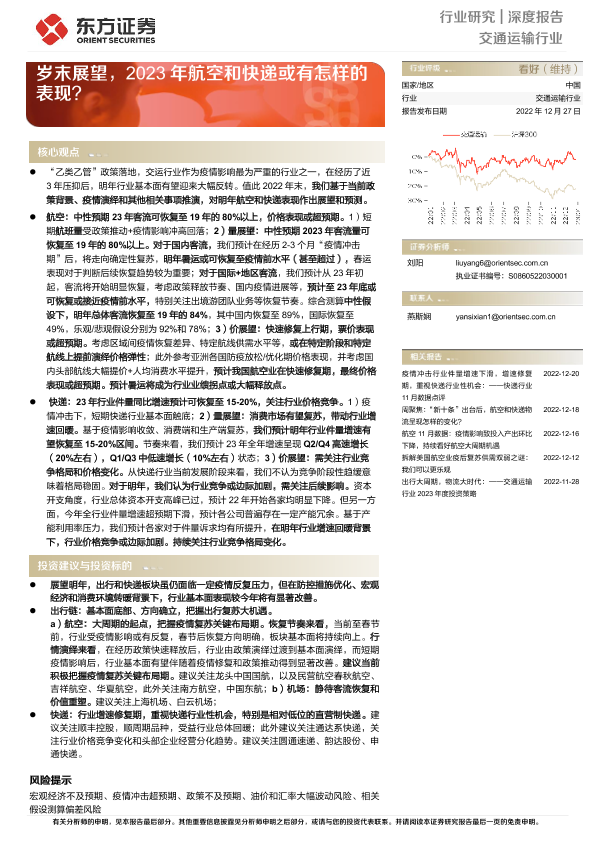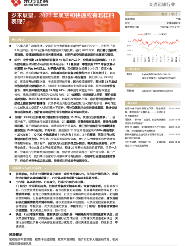 【东方证券】【20221227】交通运输行业深度报告_岁末展望_2023年航空和快递或有怎样的表现-28页