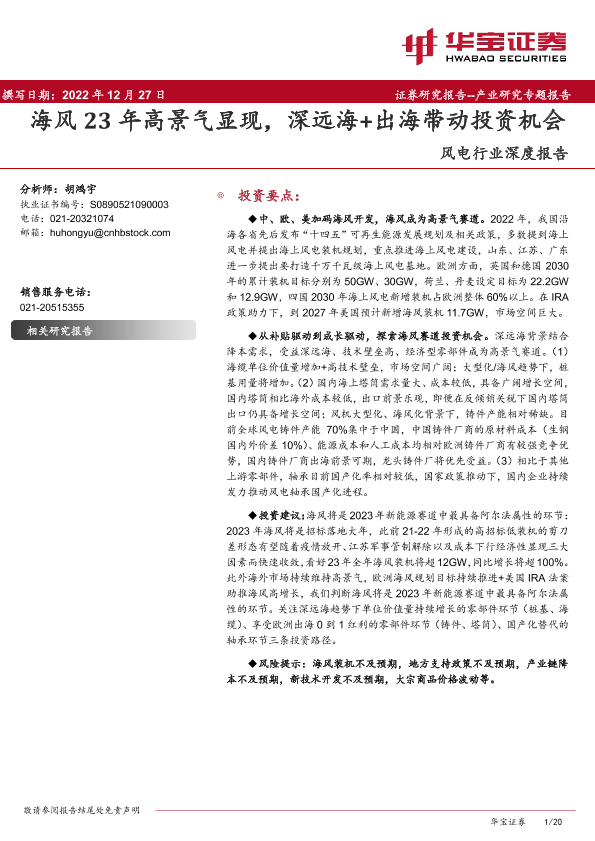 【华宝证券】【20221227】深度报告-20221227-华宝证券-风电行业深度报告_海风23年高景气显现_深远海+出海带动投资机会-20页