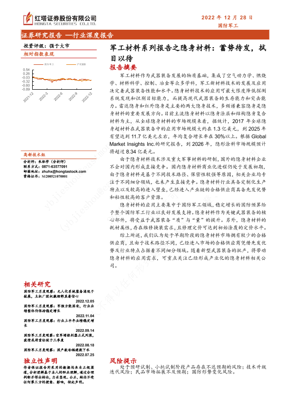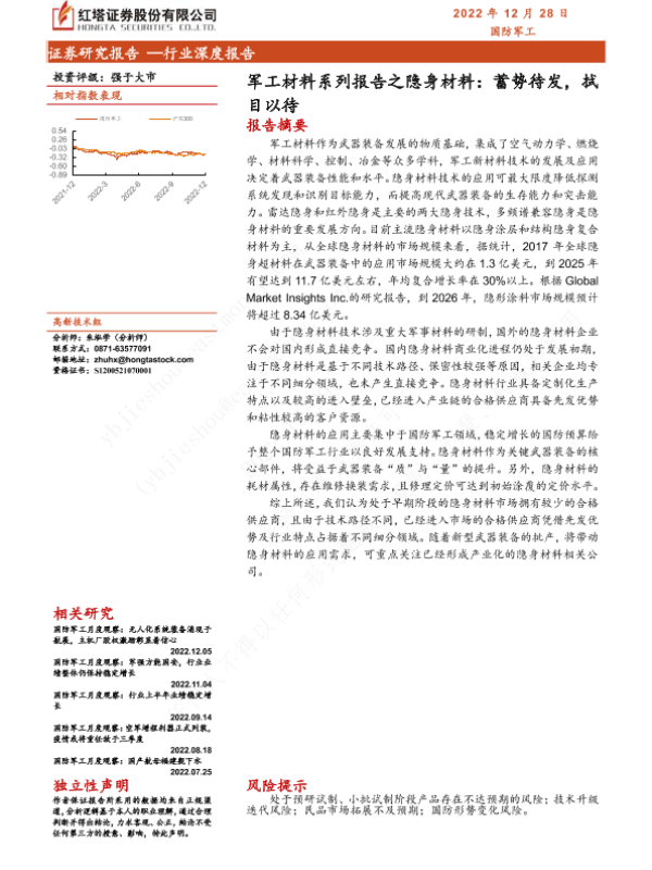 【红塔证券】【20221228】军工材料系列报告之隐身材料:蓄势待发,拭目以待-30页