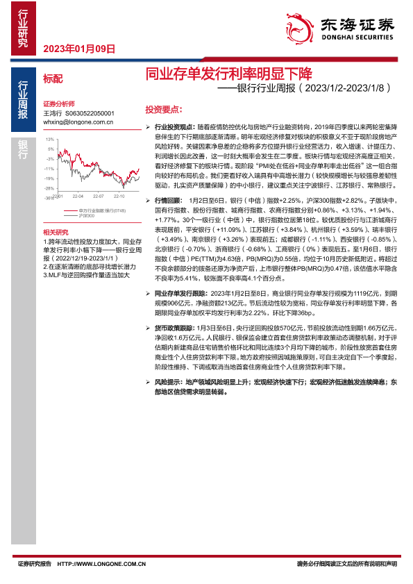 【东海证券】【20230109】同业存单发行利率明显下降——银行行业周报(2023/1/2-2023/1/8)-11页