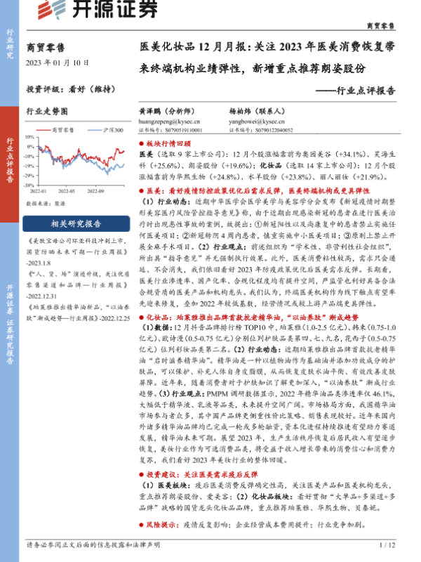 【开源证券】【20230110】医美化妆品12月月报:关注2023年医美消费恢复带来终端机构业绩弹性,新增重点推荐朗姿股份-12页