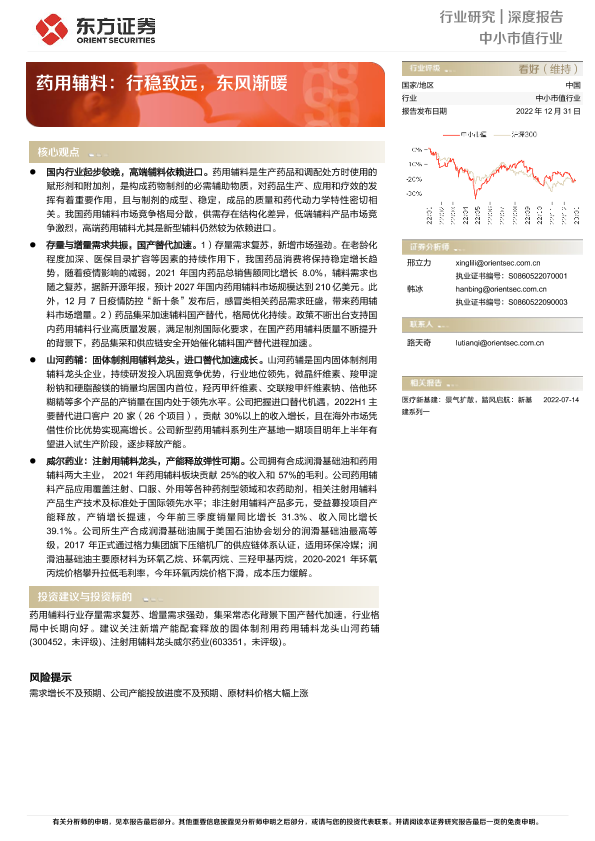 【东方证券】【20221231】药用辅料:行稳致远,东风渐暖-31页