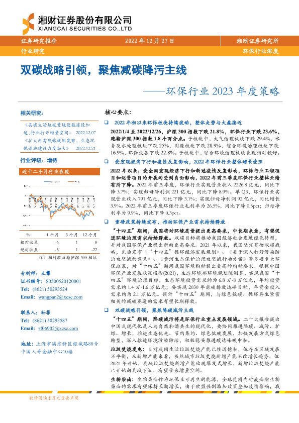 【湘财证券】【20221230】深度报告-20221230-湘财证券-环保行业2023年度策略_双碳战略引领_聚焦减碳降污主线-24页