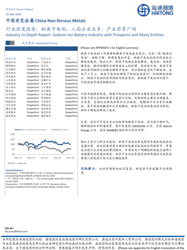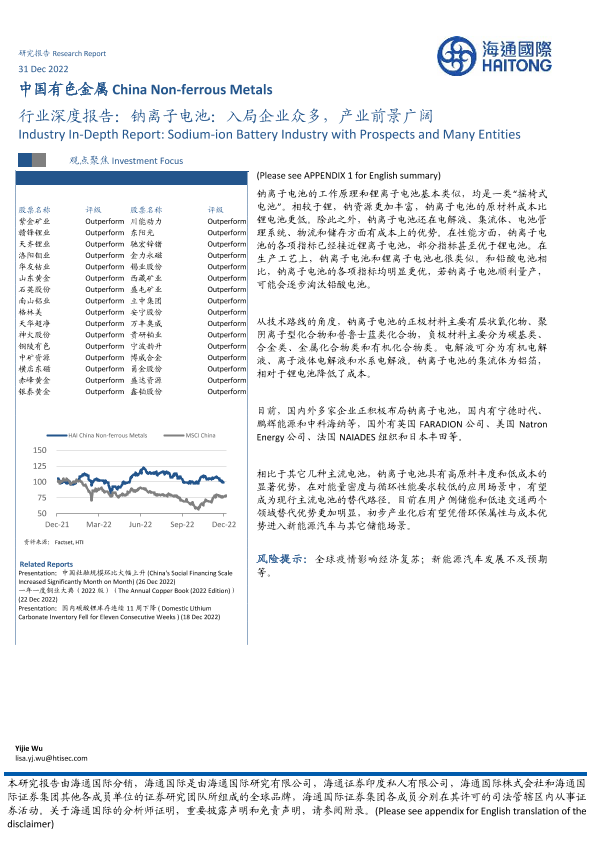 【海通国际】【20221231】中国有色金属行业深度报告:钠离子电池:入局企业众多,产业前景广阔-23页