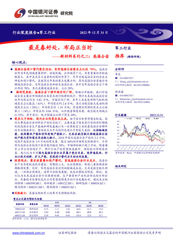 【银河证券】【20221231】最是春好处,布局正当时——新材料系列之二:高温合金-31页