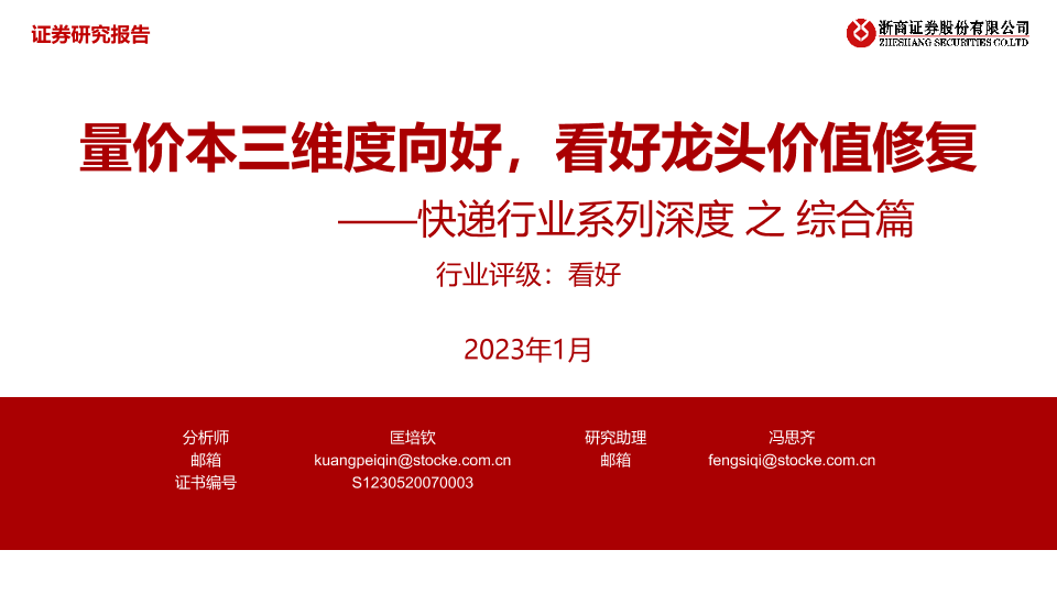 【浙商证券】【202301】深度报告-快递行业系列深度之综合篇:量价本三维度向好,看好龙头价值修复-72页