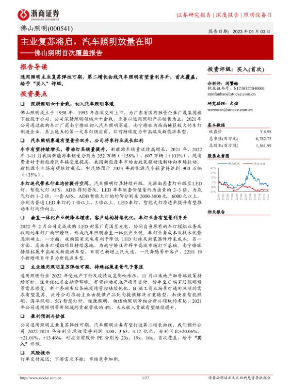【浙商证券】【20230103】佛山照明首次覆盖报告_主业复苏将启_汽车照明放量在即-27页