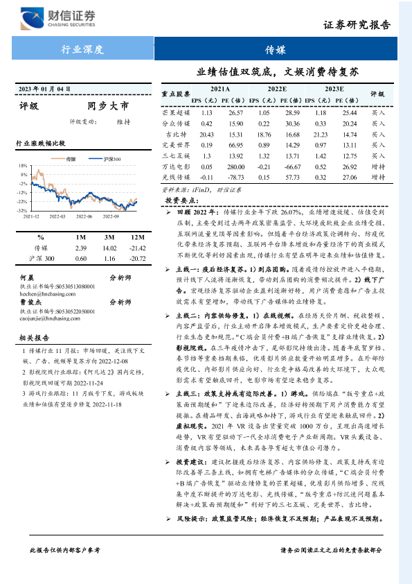 【财信证券】【20230104】深度报告-20230104-财信证券-传媒行业深度_业绩估值双筑底_文娱消费待复苏-37页