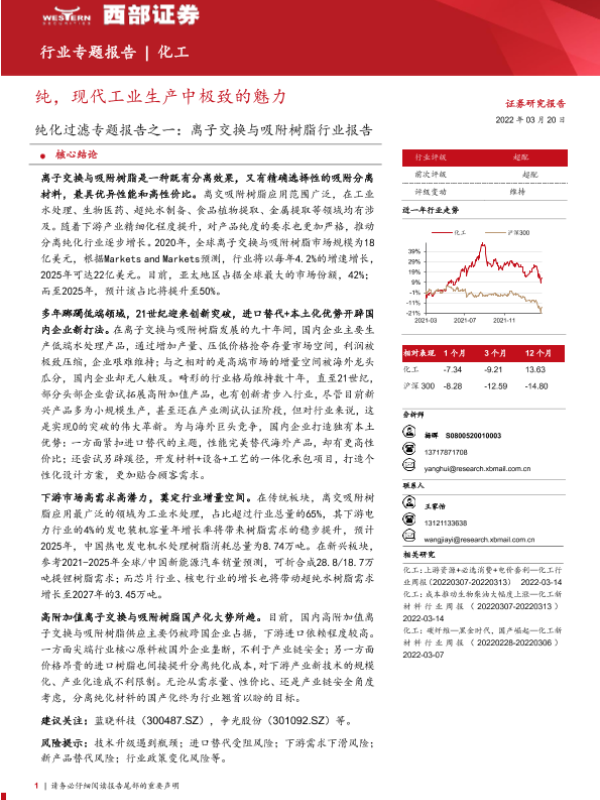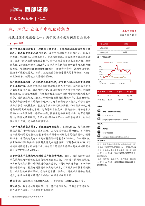 【西部证券】【20220320】纯化过滤专题报告之一:离子交换与吸附树脂行业报告,纯,现代工业生产中极致的魅力-44页