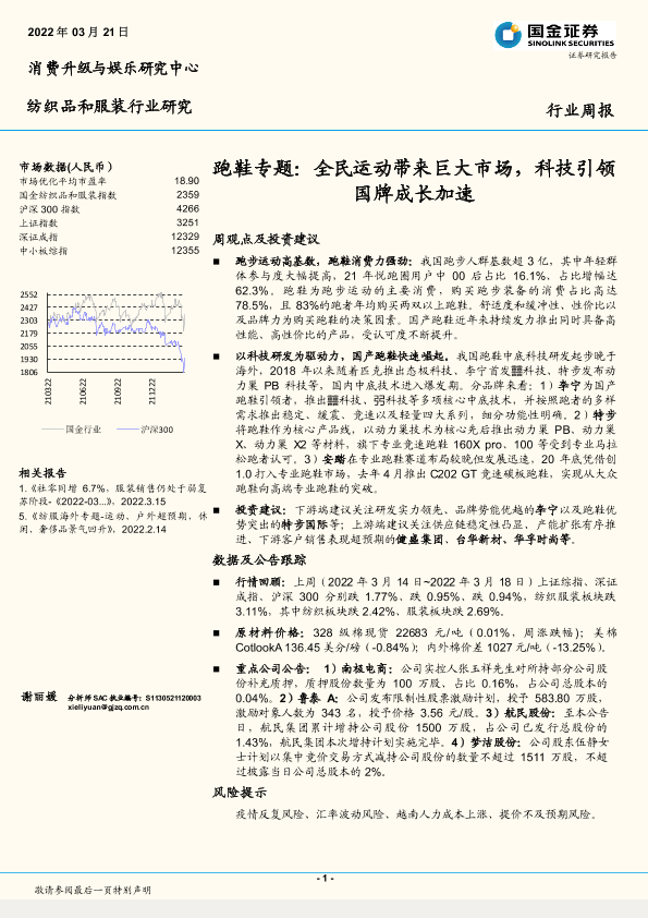 【国金证券】【20220321】纺织品和服装行业跑鞋专题:全民运动带来巨大市场,科技引领国牌成长加速-19页