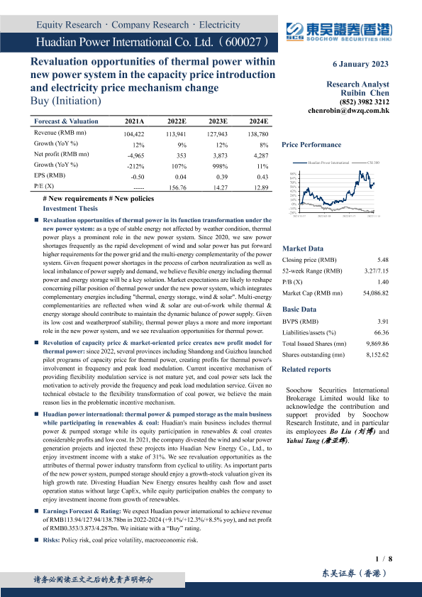 【东吴证券(香港)】【20230106】深度报告-20230106-东吴证券国际经纪-华电国际-600027.SH-新型电力系统下火电支撑性电源价值重估_容量电价变革火电电价机制-8页