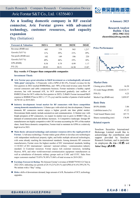 【东吴证券(香港)】【20230106】国内射频同轴连接器领先者_技术领先+客户资源+产能扩张促进公司发展-9页