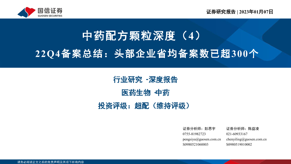 【国信证券】【20230107】深度报告-20230107-国信证券-中药配方颗粒深度(4)_22Q4备案总结_头部企业省均备案数已超300个-42页